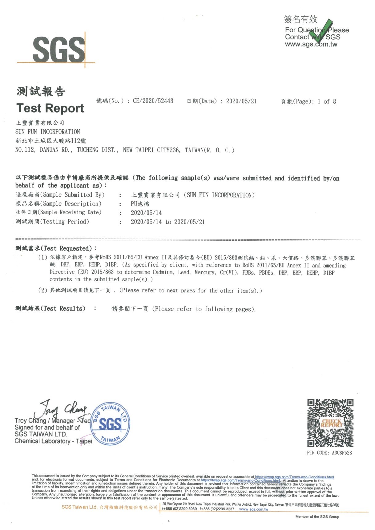 SGS檢驗 – 不含任何重金屬ROHS危害性物質